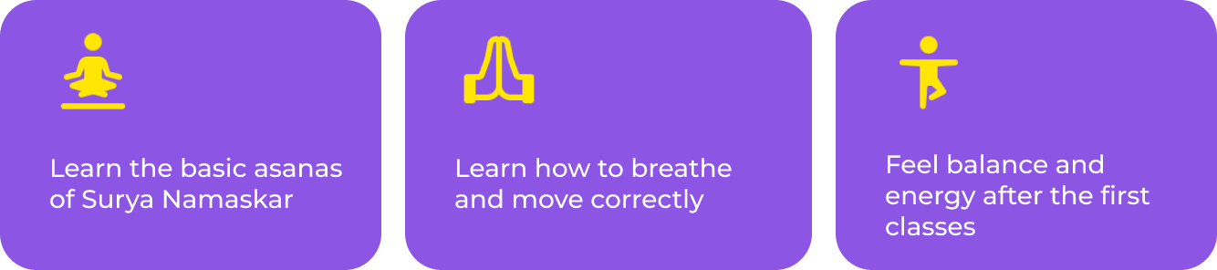 This microcourse will allow you to perform an effective complex safely for your health, with attention to detail and adjustments in each asana, preparatory exercises for some poses.