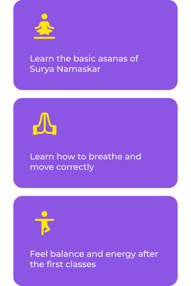 "Sun Salutation for Beginners in Yoga" is a step-by-step microcourse where you will